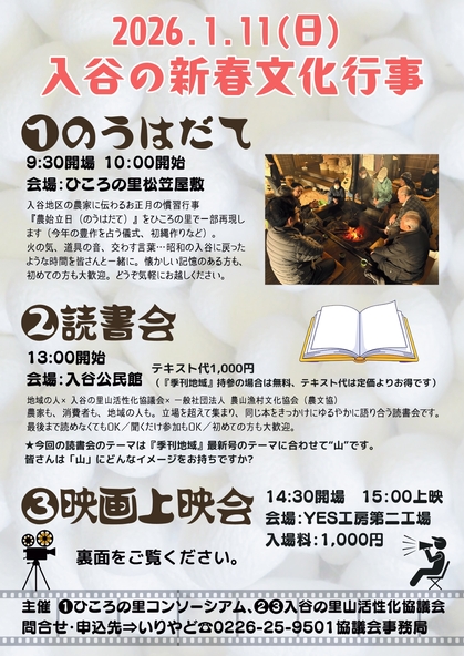 農家の正月行事、読書会、シルクの物語映画まで!入谷地区の新春文化行事