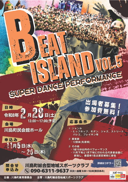 埼玉県比企郡川島町の川島町民会館ホールで、2026年2月28日(土)に「BEAT ISLAND vol.5」が開催されます。