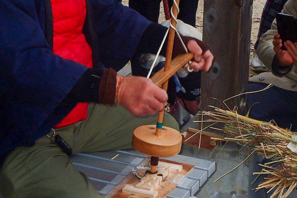 当日は公園ボランティアの「みはらしの里パートナー」の協力のもと開催されます。どんど焼きの「やぐら」を一から組み立て、きりを回して摩擦で火種を生み出す昔ながらの「まいぎり式」による火起こしが行われます。