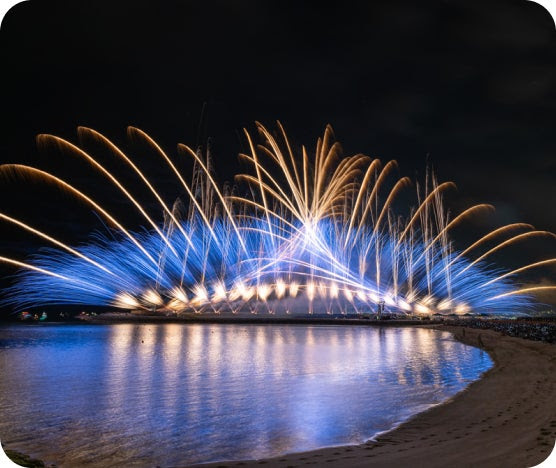 日本一早い夏の花火大会として知られるこのイベントでは、沖縄の伝統文化・音楽・自然と最先端の花火演出が融合した、約10,000発の花火が夜空と海を舞台に壮大に打ち上がります。