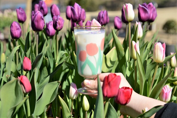 会場では、チューリップが描かれたスーベニアガラスカップ付きオーツミルクティー(2,400円、ドリンクのみ800円)や、チューリップ模様のクッキーが簡単に作れるクッキー麺棒(4,950円)など、限定グッズも販売されます。