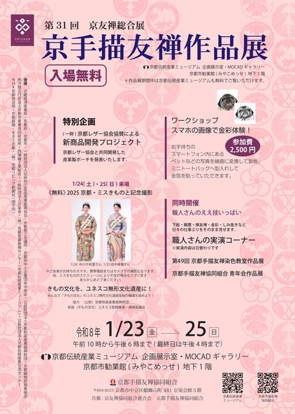 京都府京都市左京区の京都伝統産業ミュージアムでは、2026年1月23日(金)~1月25日(日)まで、「第31回 京友禅総合展 京手描友禅作品展」が開催されます。