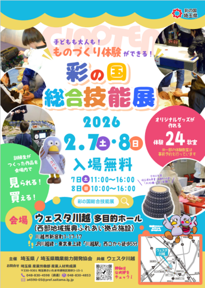埼玉県川越市の「ウェスタ川越」で、2026年2月7日(土)~2月8日(日)まで、「彩の国総合技能展」が開催されます。