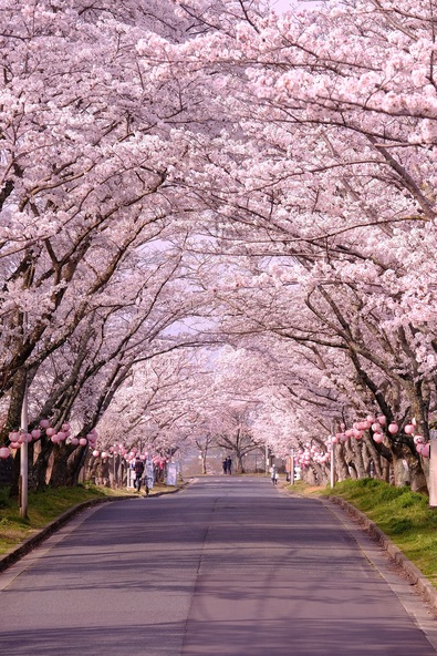 「名張中央公園」の敷地内にある道路の両側には、およそ600メートルにわたって桜の木が並んでいます。春の季節になると、優しい桜の色に包まれます。上を見れば枝いっぱいに花が咲き、足元には春の息吹を感じられるでしょう。ゆっくりと歩くだけでも、心が解きほぐされる花見の場所です。