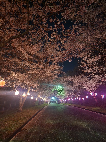 2026年3月23日(月)~2026年4月10日(金) の桜まつり期間にはライトアップが実施され、ぼんぼりの灯りの下で夜桜を観賞できます。昼間とは異なる、幻想的な雰囲気の中で桜を楽しめます。