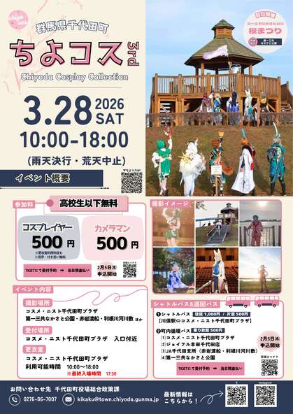 ちよコス3rd、群馬県千代田町で3月28日開催!桜や利根川を背景にコスプレ撮影を楽しもう