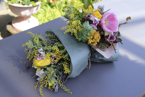 フローリストと一緒に河津桜を摘んでブーケをつくる「河津桜のブーケづくり」(3,500円)や、ミモザと春の花でブーケをつくる「ミモザの日ブーケづくり」(3,500円)が各日1回ずつ開催されます(各回定員10名・事前予約優先)。