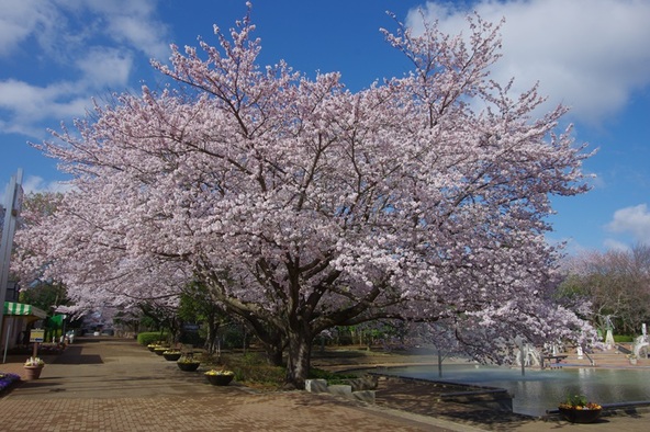 桜の見ごろは例年3月上旬〜4月下旬。中でもソメイヨシノは、芝生広場やにじの池周辺で特に美しい景色を見せてくれます。