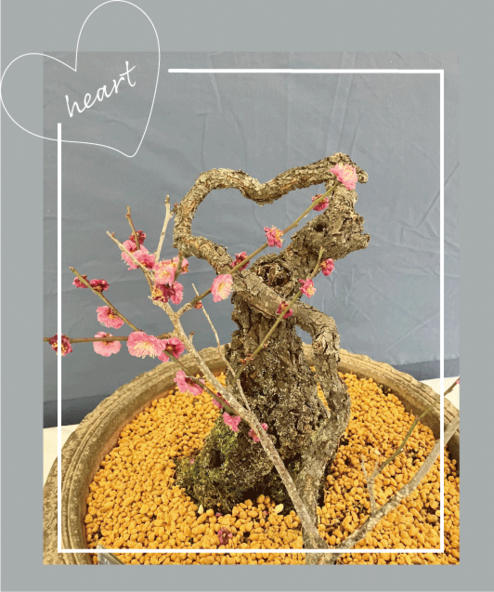 同期間中は、イベントホールで約20鉢の盆梅を展示する「盆梅展」も開催されています。荒々しい木姿にかれんな花を咲かせた盆梅は、春の訪れを感じさせてくれます。