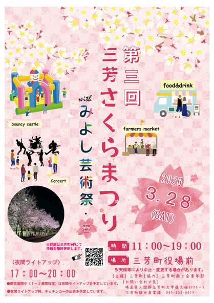 埼玉県の三芳町役場南側インターロッキング周辺で、2026年3月28日(土)に「第3回三芳さくらまつりwithみよし芸術祭・春」が開催されます。