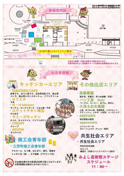 | ふりがな | だいさんかいみよしさくらまつり~うぃずみよしげいじゅつさい・はる~ |