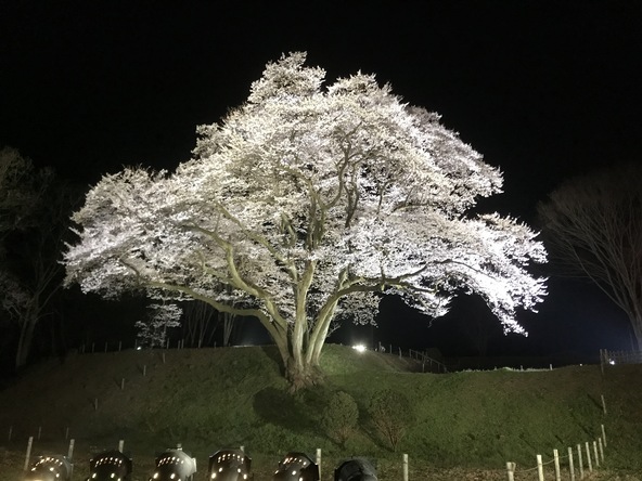 推定樹齢150年を超える迫力の巨木「氏邦桜」が照明に照らされる幻想的な夜桜ライトアップへ、ぜひ家族でおでかけしてみてください。