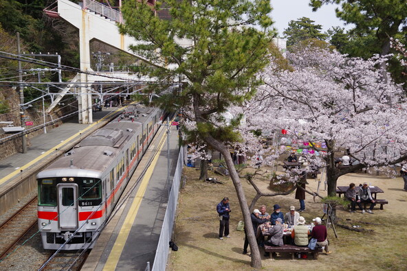 晴れた日には青い海と淡いピンクの桜が織りなす景色が楽しめます。山陽電車「須磨浦公園駅」を下車してすぐアクセスできるのも、家族でのおでかけにぴったりのポイントです。