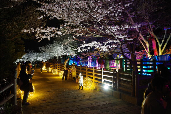 光と桜が共演する夜の須磨浦公園は、昼とはひと味違う特別な雰囲気を楽しめます。