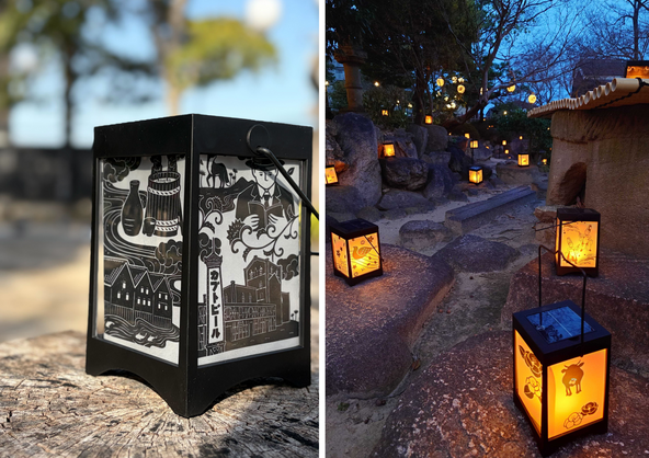 灯りに浮かび上がる影絵デザインは、半田市を象徴する観光資源をモチーフとしており、散策しながらその意匠を見つける楽しみも魅力のひとつです。