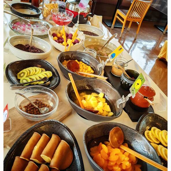 | 料金 | 大人1,280円・小学生以下680円・3歳未満無料(同伴者があんみつバーを注文の場合) |