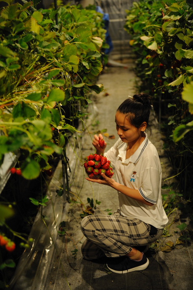 夜の部ではいちご摘みを開催し、40分間のいちご食べ放題を満喫できます。