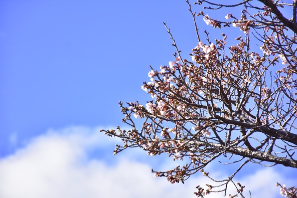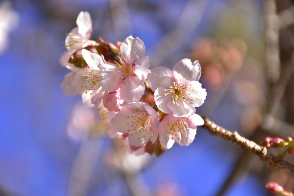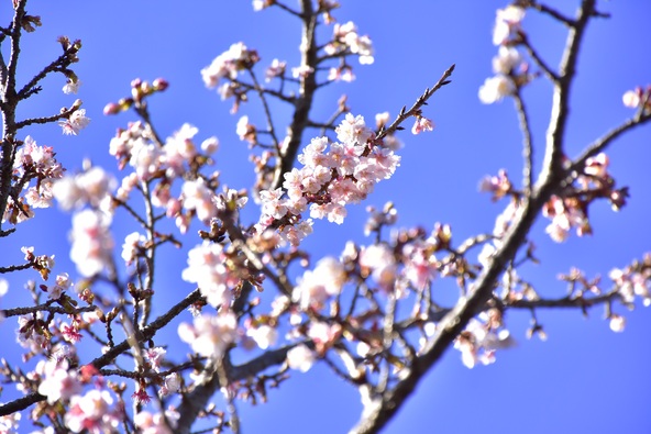 例年より早く開花した寒桜が見頃に