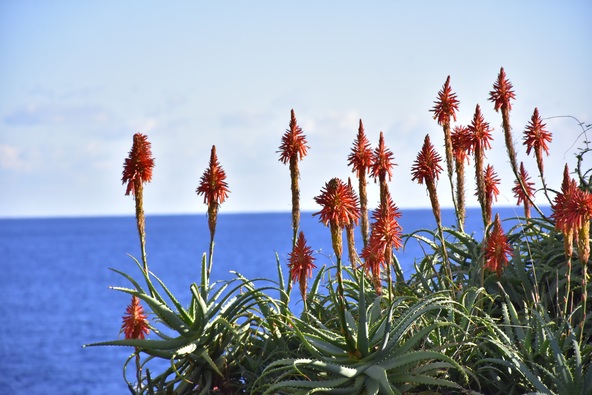 さらに、赤いとんがり帽子のようなキダチアロエの花も園内各所で見頃を迎えています。