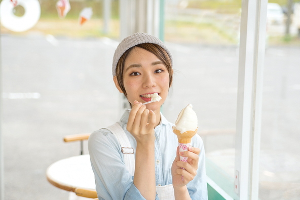 「まきばのジャージー」では、搾ったばかりのジャージー種の牛乳だけで作られた手作りジェラートを販売しています。「ミニコーン」(260円~)は、濃厚でクリーミーな味わいが評判で、多くの来場者に愛される人気商品です。