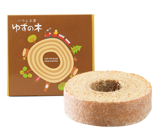 茂木で収穫された米を粉にして焼き上げたバウムクーヘンは、しっとりとした口当たりと、もちもちした弾力が特徴。なめらかな舌触りで、お土産にも喜ばれています。