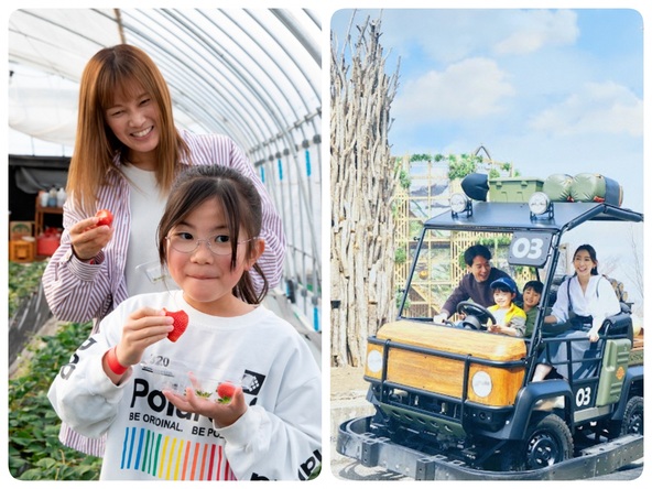 美土里農園でいちご狩りからスタートし、車で15分移動して道の駅で昼食。その後、車で15分走って「モビリティリゾートもてぎ」へ向かい、多種多様なアクティビティで一日中遊び尽くします。