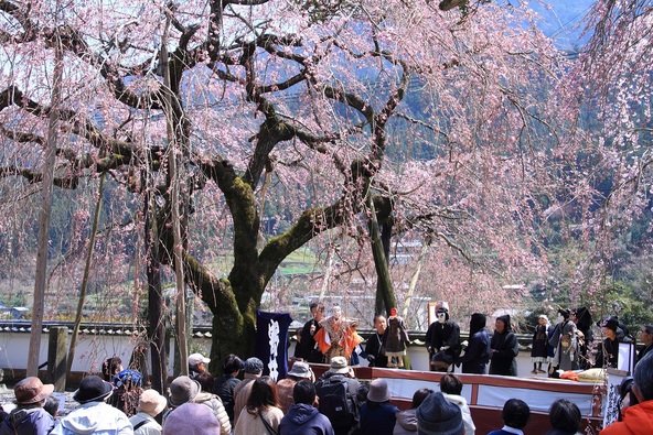 徳島県神山町にある「明王寺」には、樹齢100年と80年の2本のしだれ桜があり、例年3月下旬から4月上旬に見頃を迎えます。