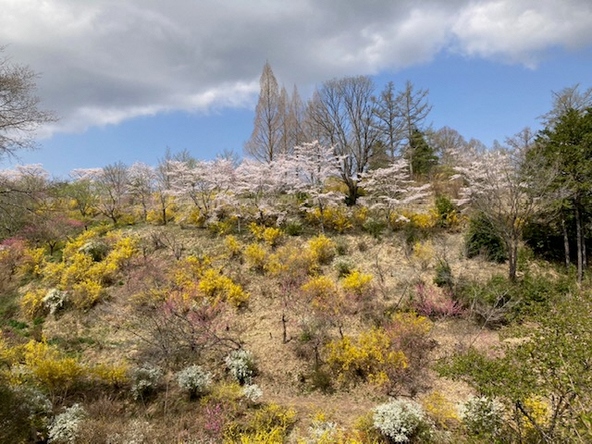 春にはツバキ、サンシュユ、ユキヤナギ、レンギョウ、ハナモモ、サクラ、ボケ、ヤマブキ、マンサク、ツツジ、ハナミズキといった花々が開花します。