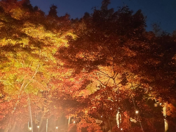 桜が咲く時期と紅葉の季節には、夜間のライトアップが実施されます。昼間とは違った幻想的な雰囲気の中で桜や紅葉を楽しめます。