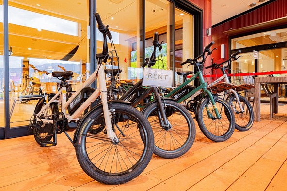 また、ビジターセンターにはE-bikeのレンタサイクルがあり、家族でのサイクリングが特におすすめ。子供も楽しめる「キッズバイク」はもちろん、自転車で牽引する「キッズトレーラー」や「チャイルドシート」も用意されているので、小さな子供連れでも一緒に風を感じて遊べます。